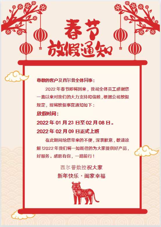 上饶长鑫航空航天集团2022年春節放假通知! 企業動态 新聞資訊 cnc加工中心廠家_小型數控銑床_小型數控機床_東莞市上饶长鑫航空航天集团
